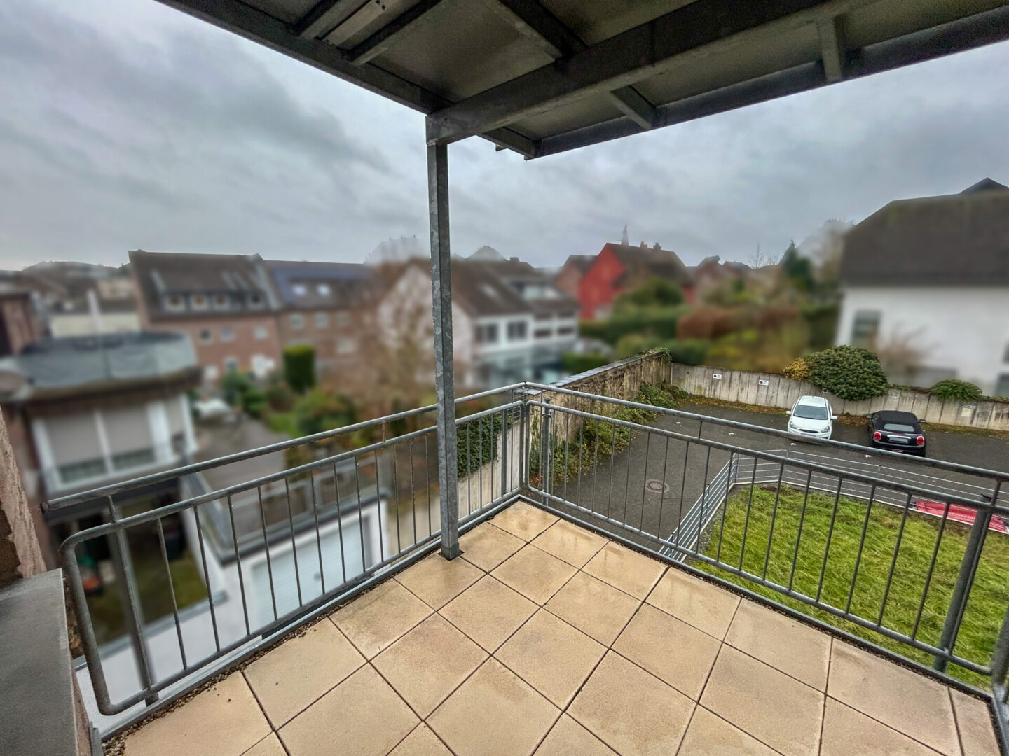 Über den Wohnbereich erreichen Sie das Highlight der Wohnung: den überdachten Südbalkon mit einer Fläche von ca. 6,8 m², einem ansprechenden Stahlgeländer und hellbeigen Balkonplatten. Nach Rücksprache mit der Eigentümergemeinschaft besteht hier die Möglichkeit, ein Balkonkraftwerk zu installieren.