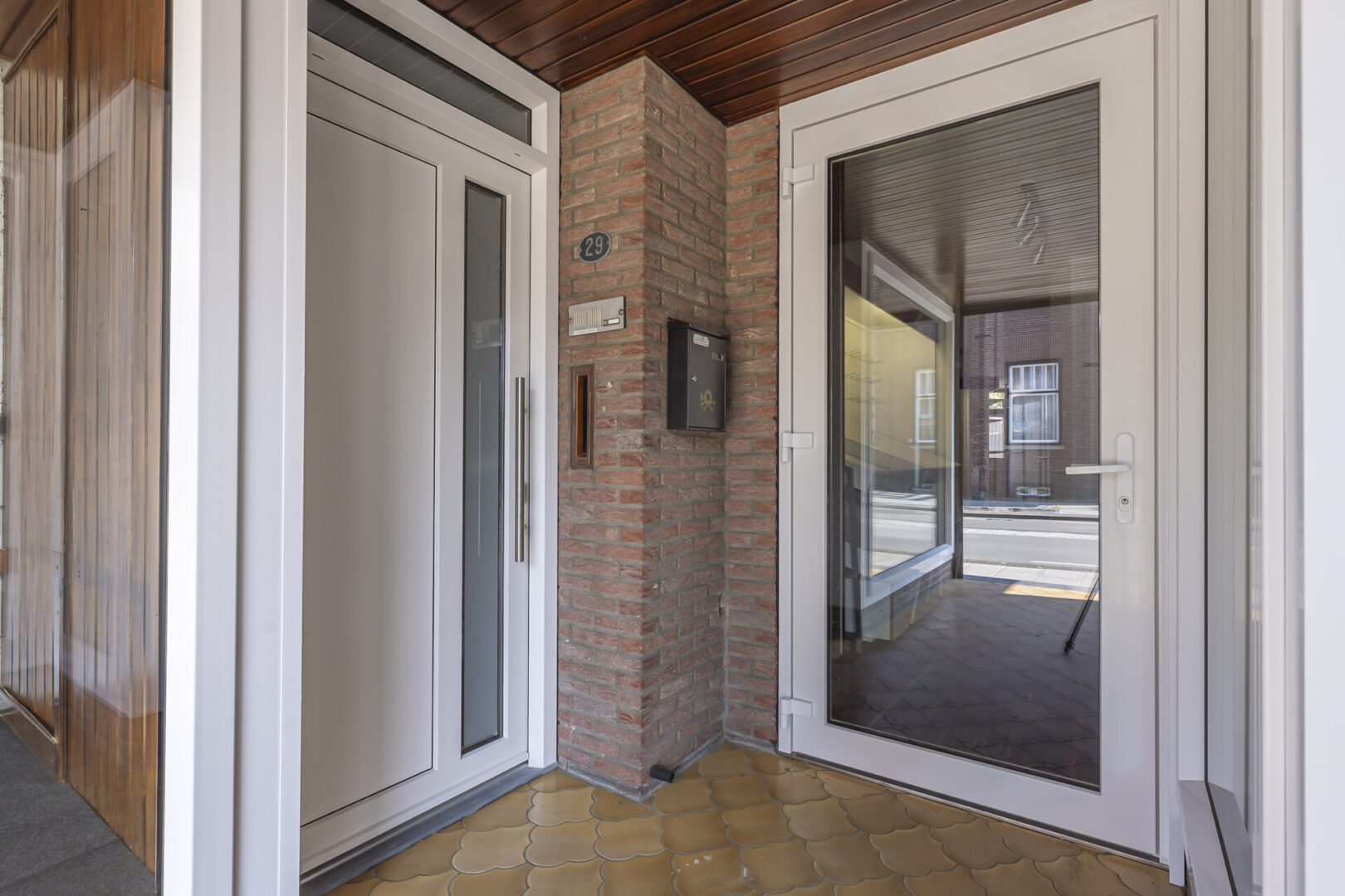 Im Erdgeschoss befinden sich zwei Schaufensterfronten, die für eine attraktive Präsentation sorgen. Der überdachte Eingang ermöglicht den Zugang sowohl zum Wohn- als auch zum Geschäftsbereich.