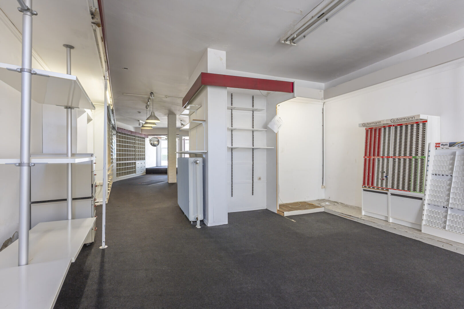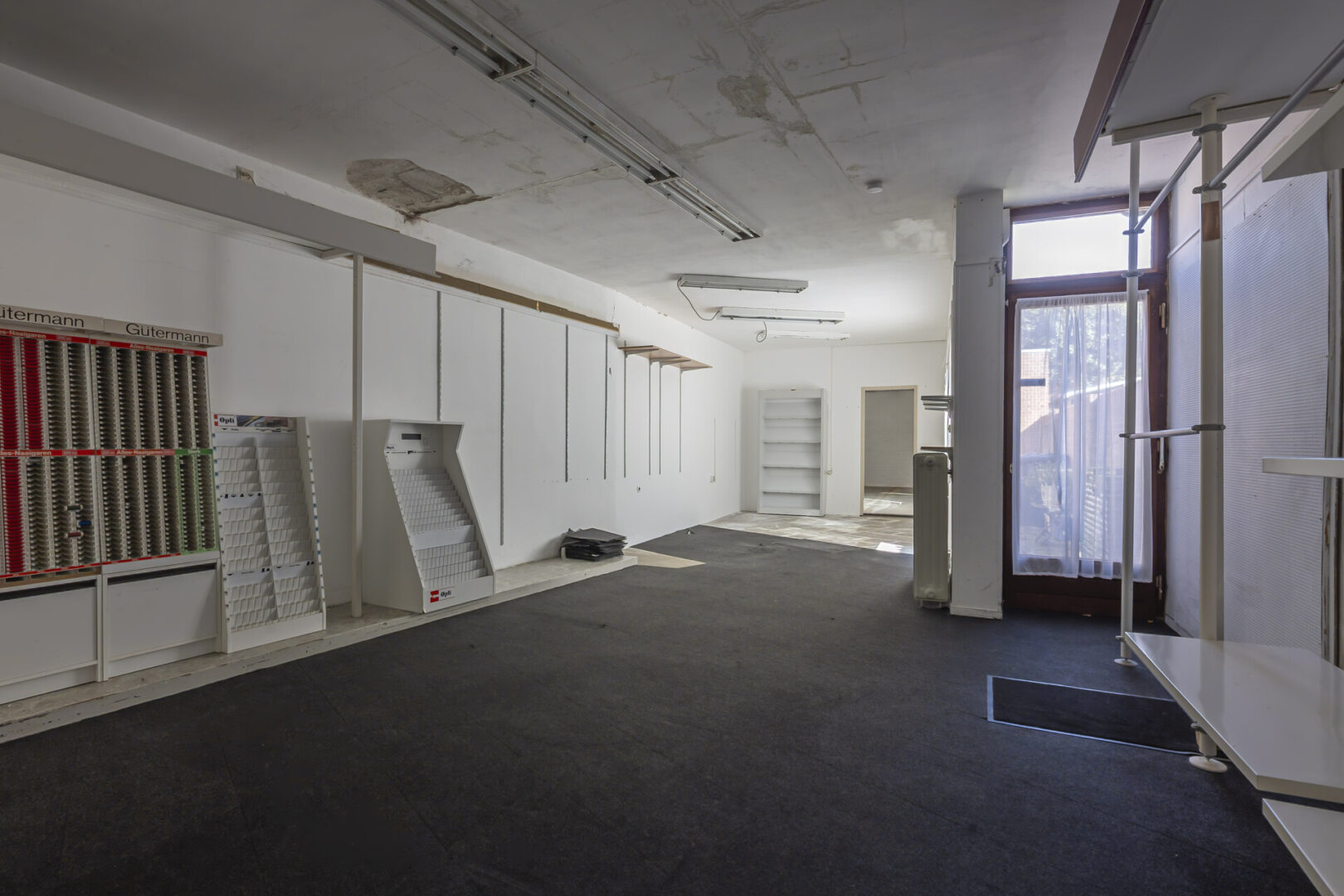 Das Ladengeschäft erstreckt sich über das gesamte Erdgeschoss, umfasst ca. 91 m² und ist mit Teppichboden ausgestattet.
