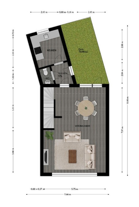 Über einen separaten Eingang und eine Treppe gelangen Sie ins Obergeschoss, das mit einem großzügigen Wohnzimmer und einer modernen Küche überzeugt.