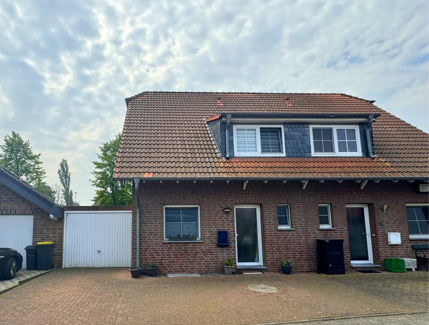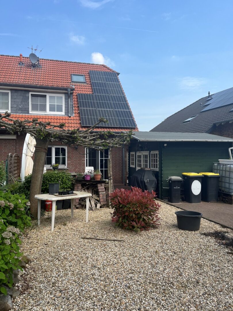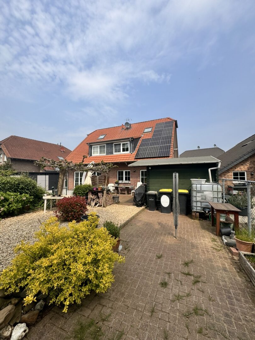 Die 1,5-geschossige linke Doppelhaushälfte verfügt über eine Garage mit gepflasterter Einfahrt und vorder- und rückseitig Dachgauben, die für ein großzügigeres Wohngefühl sorgen. Eine Photovoltaikanlage auf dem Dach sorgt zudem für eine nachhaltige Energieversorgung.