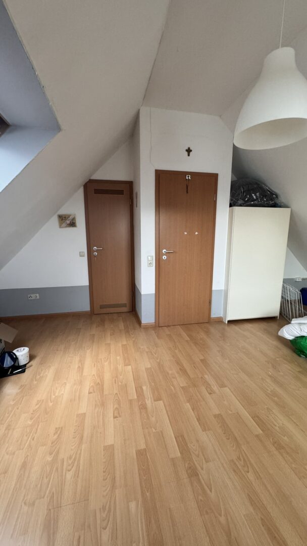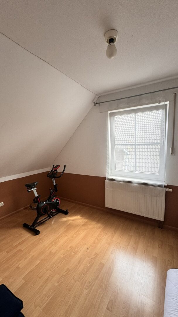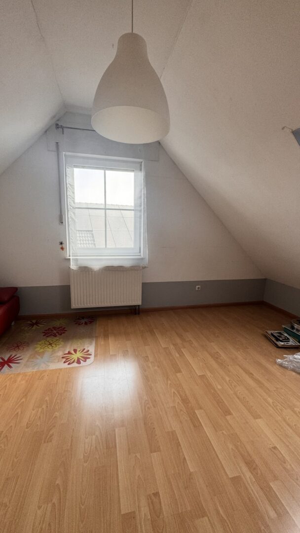 Der Spitzboden ist zu einem gemütlichen Hobbyzimmer ausgebaut und verfügt zudem über einen Abstellraum, in dem sich die Heizungsanlage befindet.