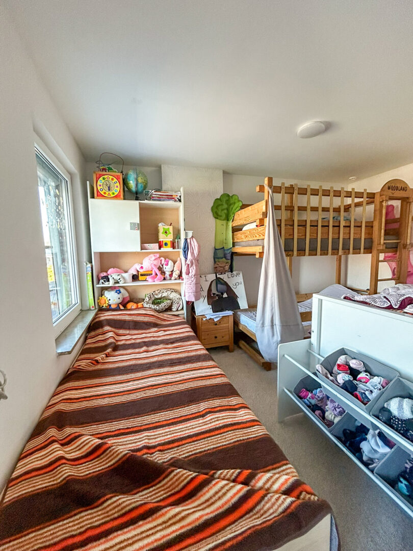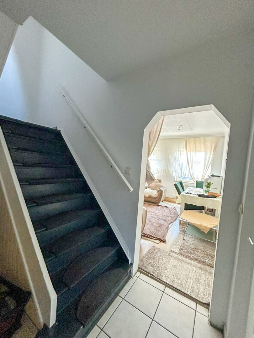 Das Einfamilienhaus erstreckt sich über zwei Vollgeschosse und überzeugt durch seine funktionale Aufteilung. Im Erdgeschoss befindet sich der straßenseitige Hauseingang, der in einen großzügigen Eingangsbereich führt. Von hier aus gelangt man über einen Flurbereich in das gemütliche Wohnzimmer sowie in die Küche mit direktem Zugang zum Duschbad. Das Obergeschoss überzeugt mit drei gut nutzbaren Schlafzimmern, einem separaten WC sowie einem zusätzlichen Raum, der sich perfekt als Ankleide oder Abstellfläche eignet. Das Dachgeschoss bietet weiteren Stauraum und rundet das Platzangebot sinnvoll ab. Zusätzlichen Stauraum bietet der Teilkeller mit einem praktischen Kellerraum. Vom Eingangsbereich aus, gelangen Sie über bodentiefe Fenster in den geschützten Innenhof, der Ihnen Privatsphäre und vielseitige Nutzungsmöglichkeiten bietet. Von hier aus erreichen Sie: