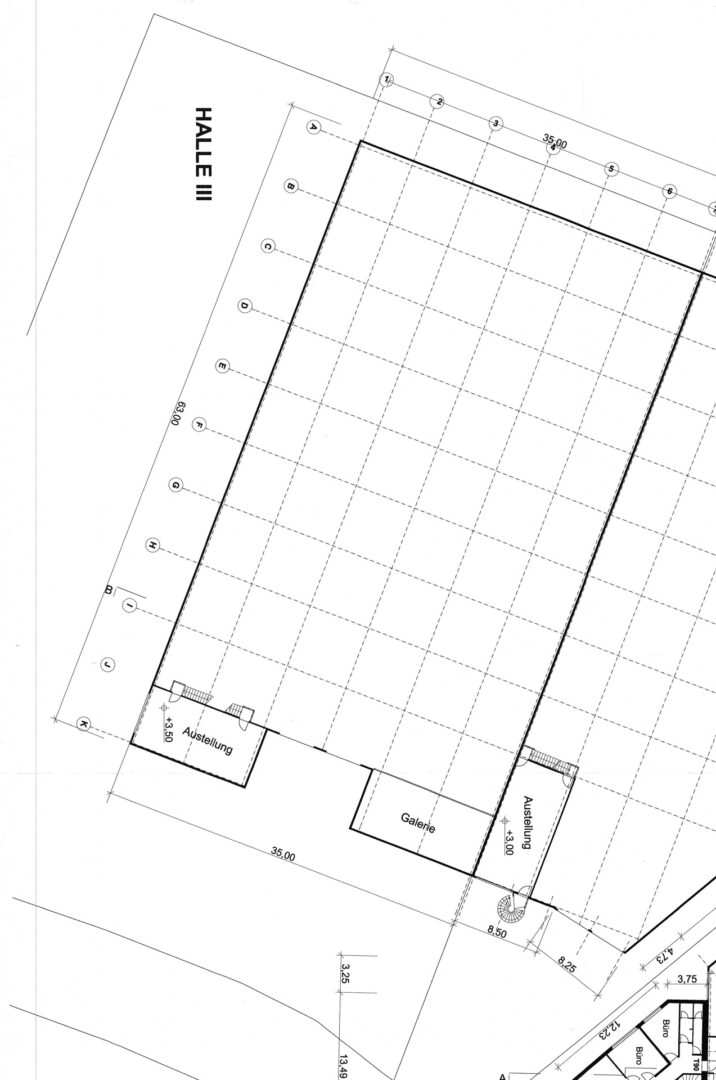 Ergänzt wird die Hallenfläche durch eine dreigeschossige Büro- und Sozialfläche mit insgesamt ca. 280 m², welche über eine Stahltreppe miteinander verbunden sind. Die Flächen verteilen sich auf ca. 70 m² im Erdgeschoss, ca. 70 m² im ersten Obergeschoss und ca. 140 m² im zweiten Obergeschoss.