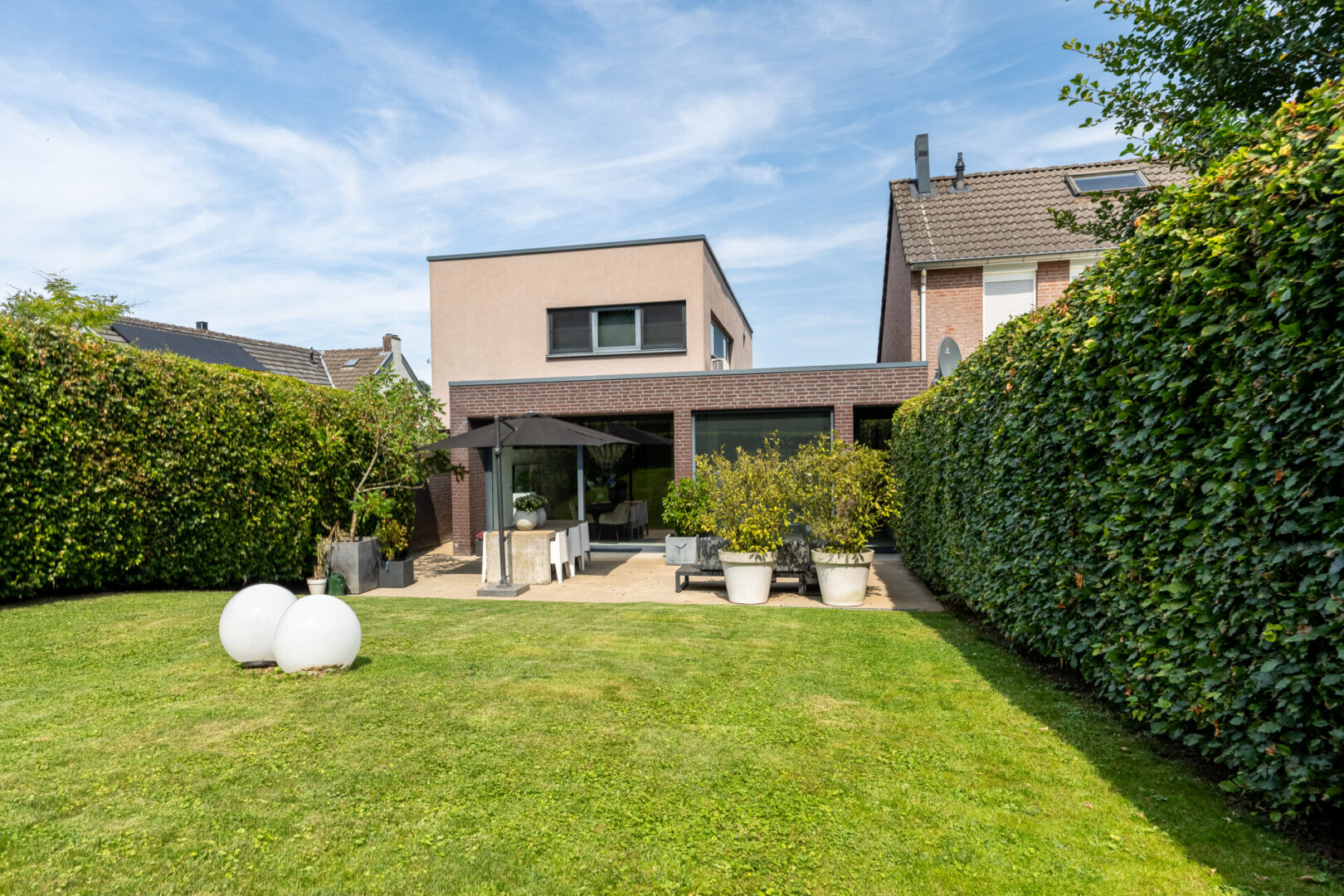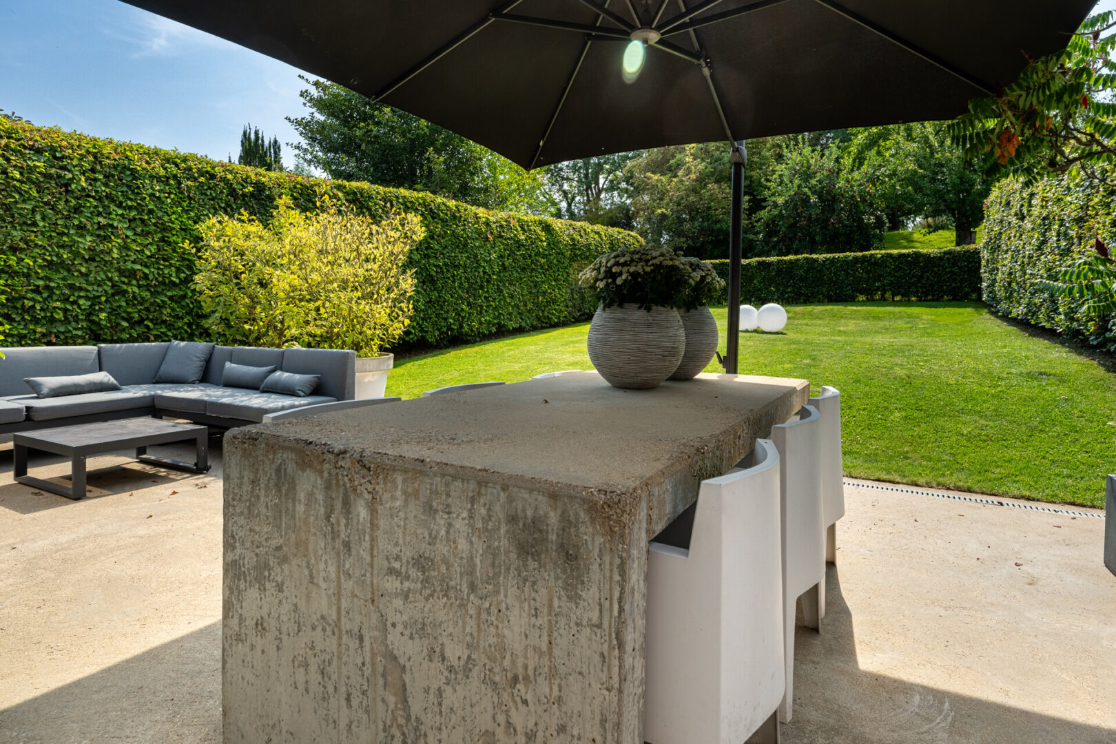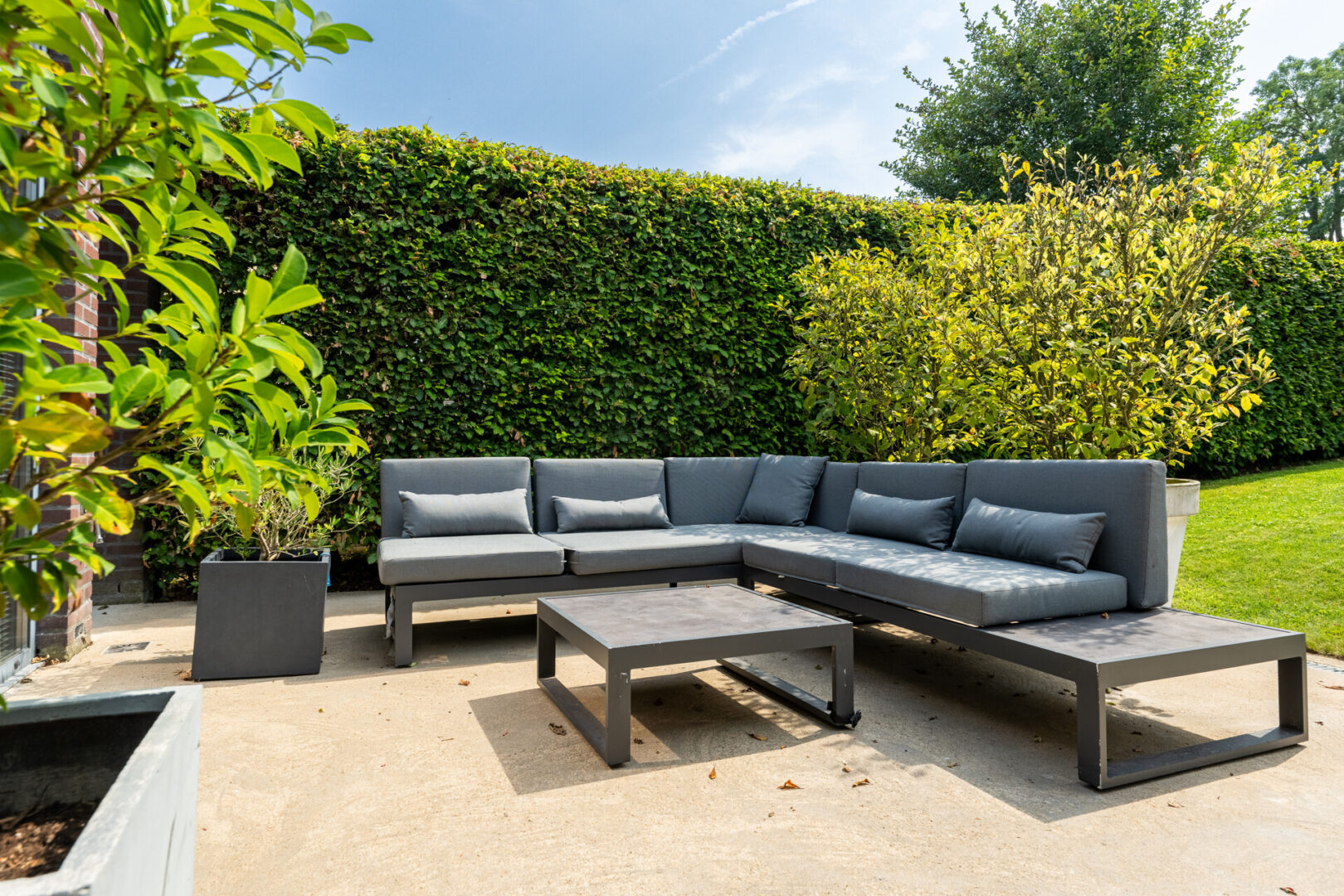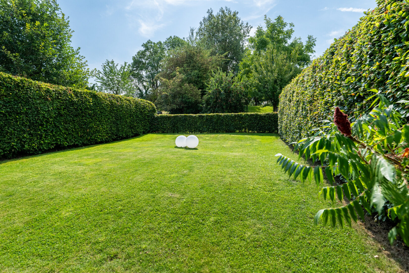Der sonnige Garten ist nach Südwesten ausgerichtet und bietet viel Privatsphäre. Eine großzügige Terrasse und ein gepflegter Rasen werden von einer dichten Buchenhecke eingefasst, sodass man die Ruhe und das viele Grün ungestört genießen kann.