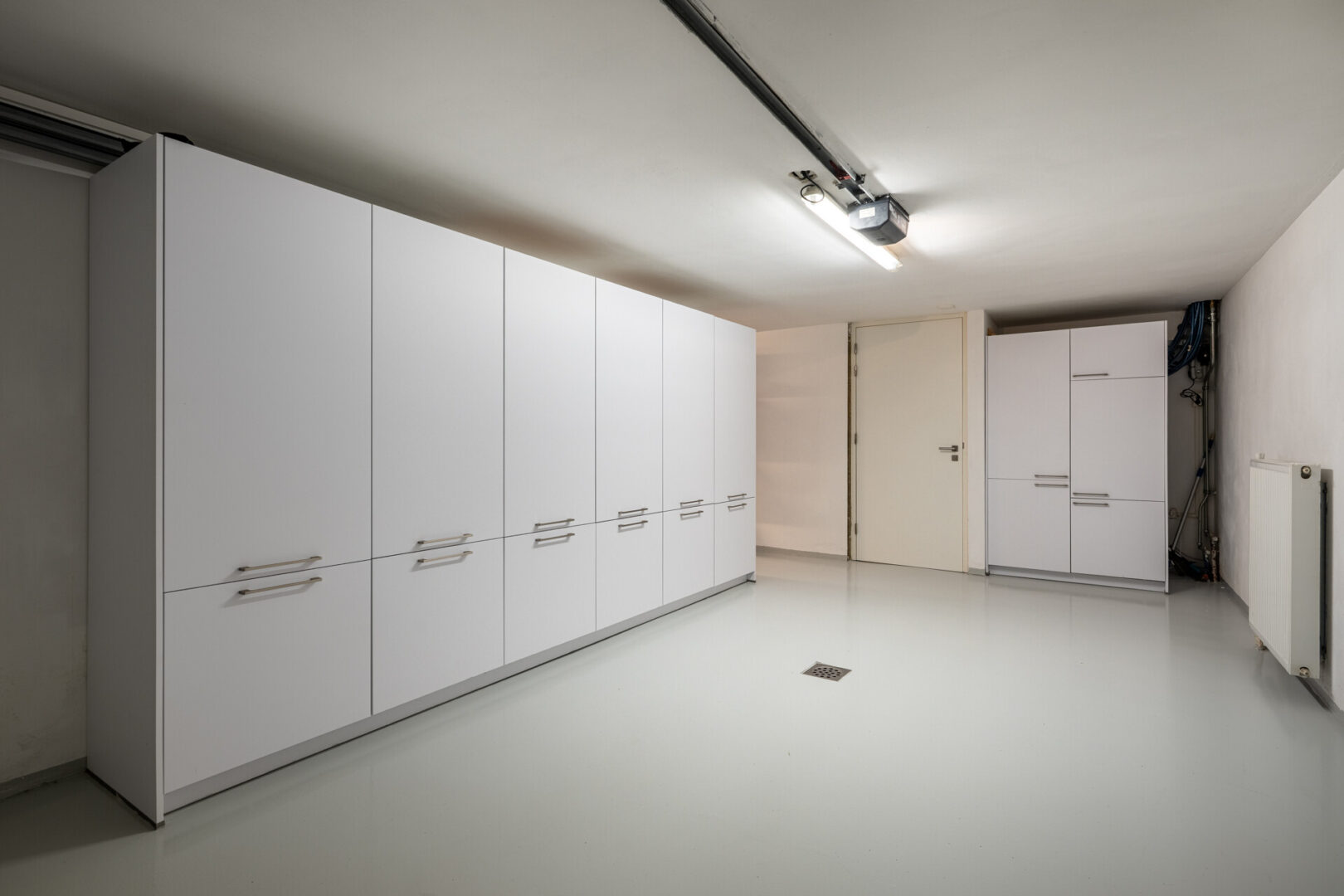Die Zufahrt zum Haus ist großzügig gestaltet und bietet Platz für drei Fahrzeuge. Die integrierte Garage ist sowohl über ein elektrisches Sektionaltor von außen als auch über eine Treppe vom Flur im Hausinneren erreichbar. Sie bietet Platz für ein Fahrzeug und verfügt über einen Bodenablauf, Wandschränke, eine Kühl-Gefrier-Kombination sowie ausreichend Stauraum. Zusätzlich befindet sich auf dieser Ebene ein praktischer Hauswirtschaftsraum mit Arbeitsfläche und weiteren Aufbewahrungsmöglichkeiten. Der gesamte Bereich ist mit einem langlebigen und pflegeleichten Epoxidboden versehen.