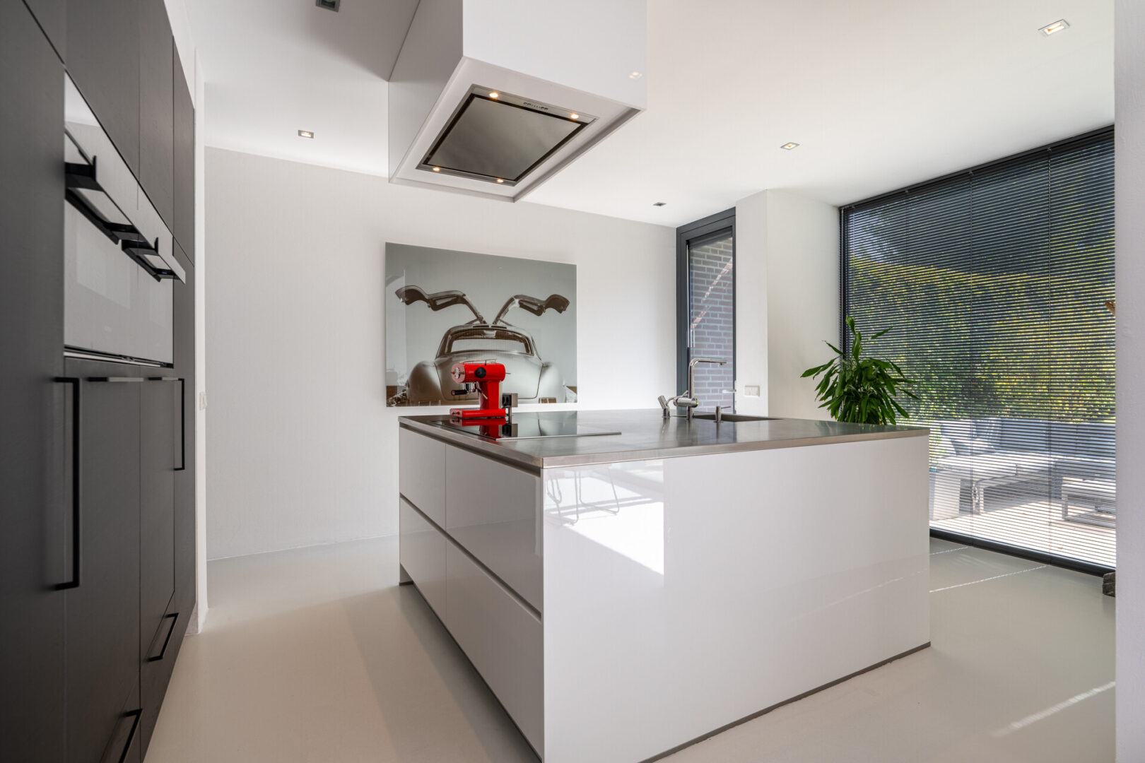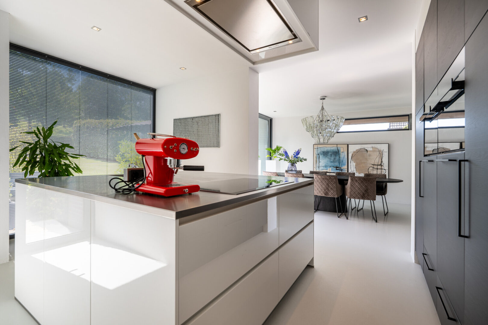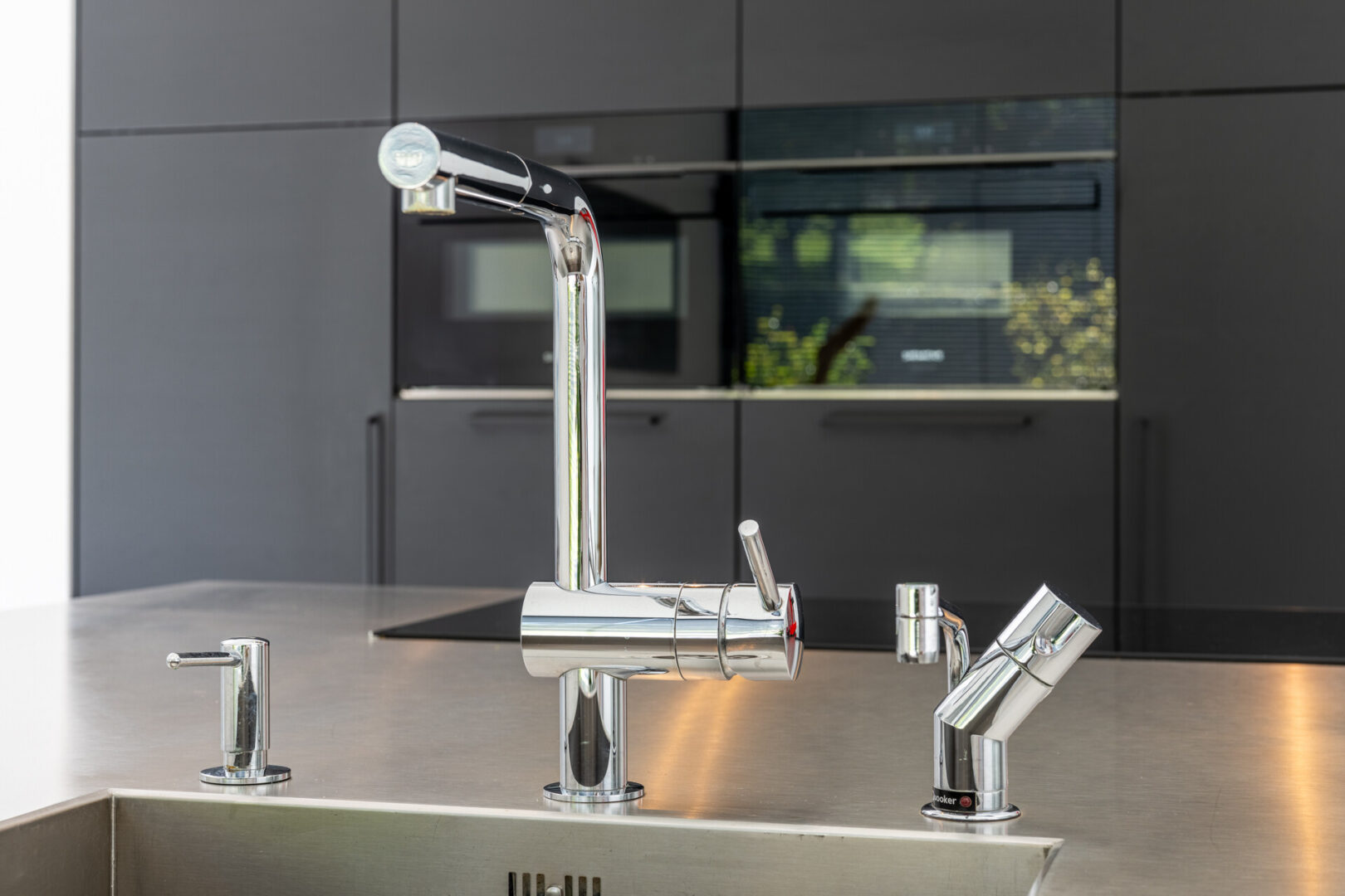 Die moderne Küche wurde erst vor einem Jahr eingebaut. Die großzügige Kochinsel mit Arbeitsplatte aus Edelstahl ist mit hochwertigen Siemens-Geräten ausgestattet, darunter ein Kombi-Backofen, ein Dampfgarer, eine Spülmaschine, ein Kühlschrank und ein Gefrierschrank. Darüber hinaus verfügt die Küche über einen Quooker - einen innovativen Wasserhahn sowie eine Dunstabzugshaube der Marke Novi und viel Stauraum.