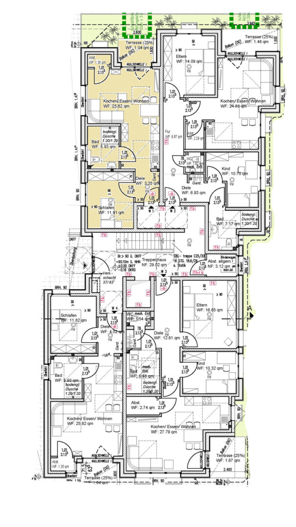 Dieses Neubauprojekt umfasst insgesamt 11 exklusive Eigentumswohnungen davon 5 Zweizimmerwohnungen und 6 Dreizimmerwohnungen, mit Wohnflächen von ca. 50 – 85 m², alle inkl. Stellplatz. Alle Wohneinheiten überzeugen mit einem ansprechenden Grundriss und großzügigen Fensterflächen. Durch den Fahrstuhl haben Sie zudem einen barrierefreien Zugang zu allen Etagen.