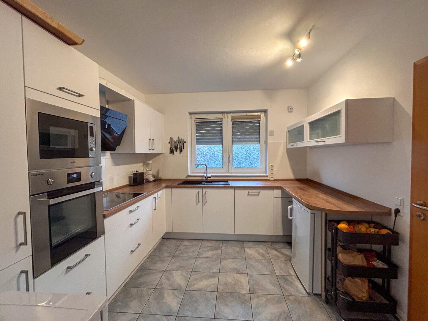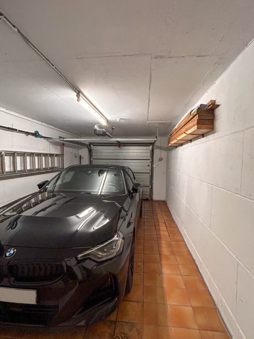 Die linksseitig gelegene Garage ist mit einem elektrisches Sektionaltor ausgestattet und verfügt über direkte Zugänge ins Haus und in den Gartenbereich.