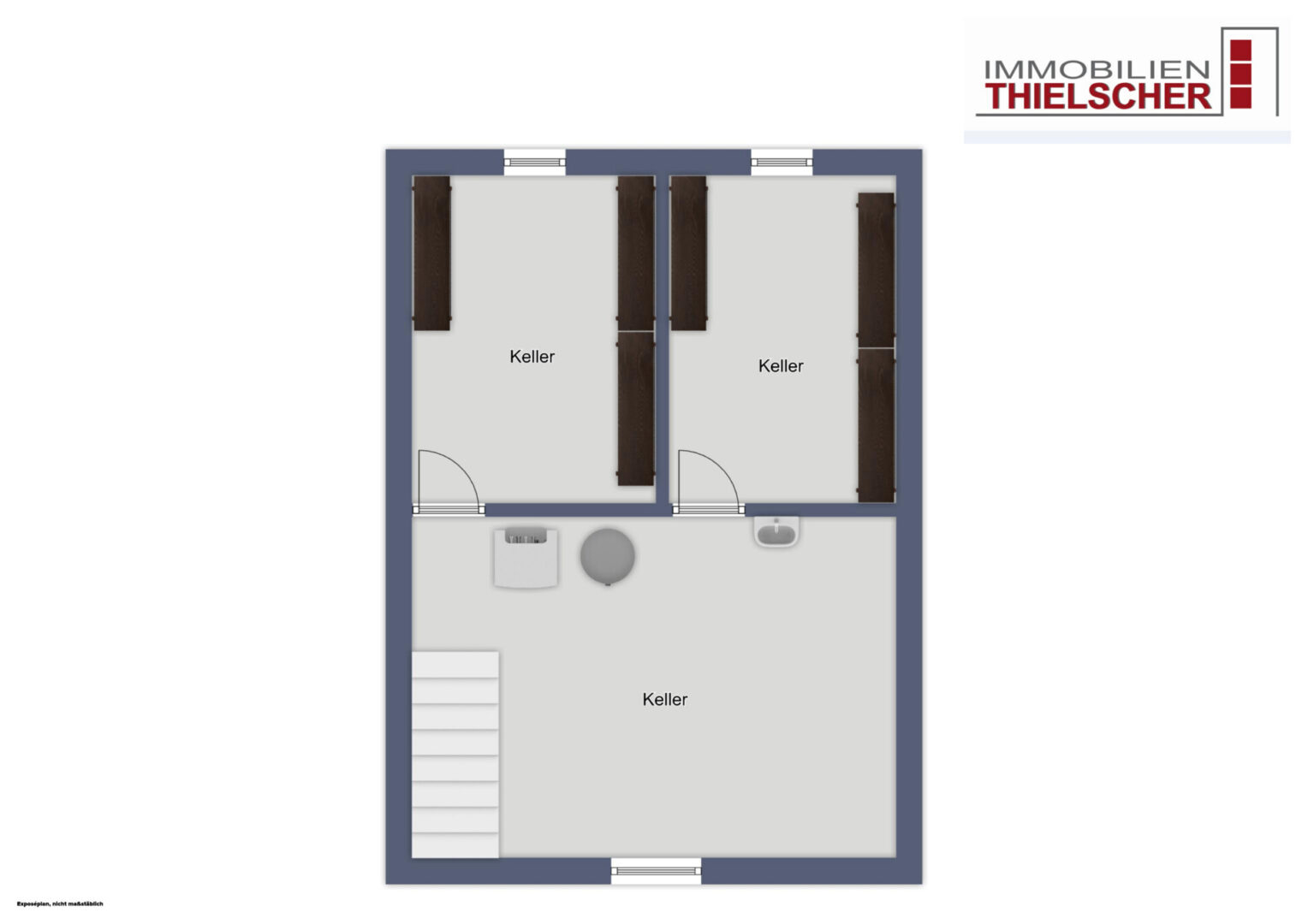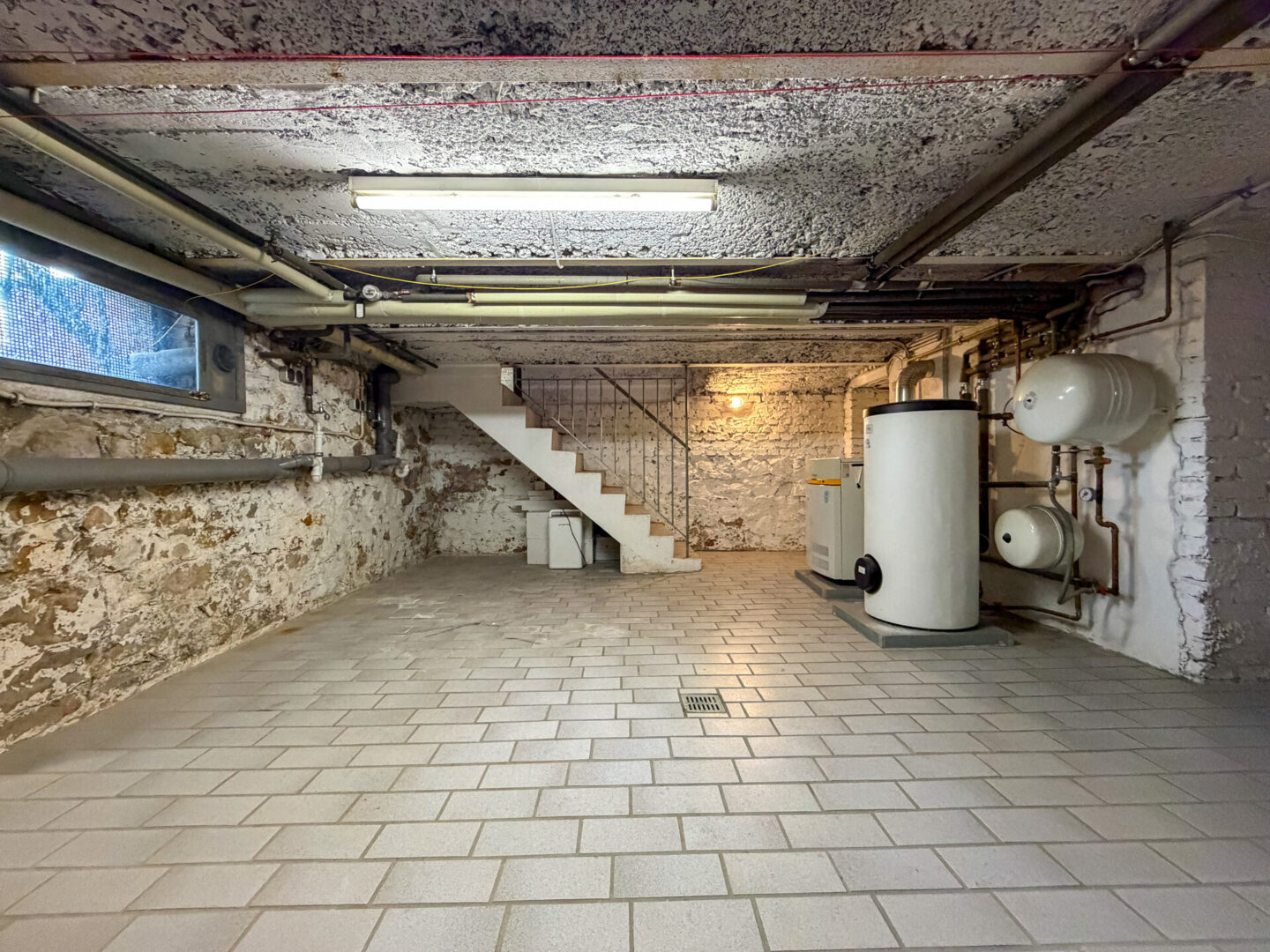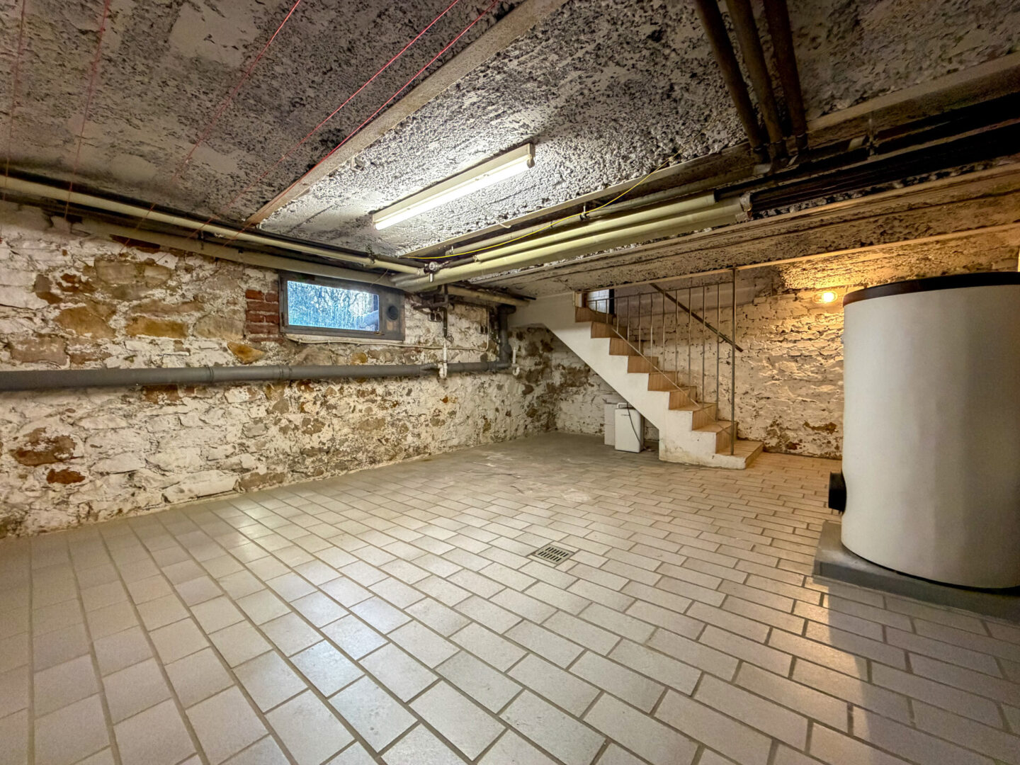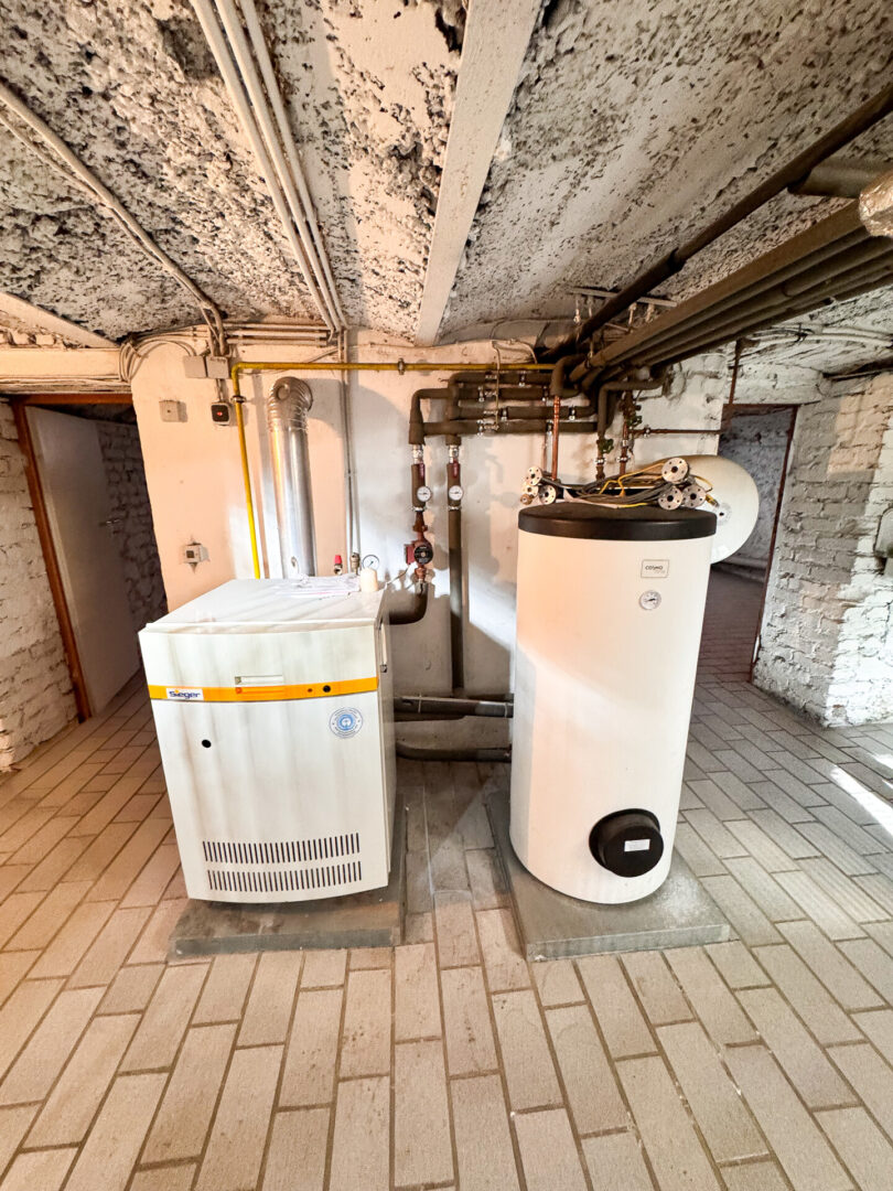 Das Haus ist komplett unterkellert. Dort stehen Ihnen zwei Abstellräume, sowie ein Gemeinschaftskeller mit Waschmaschinen-Anschlüssen, in dem auch die Gas-Zentralheizung untergebracht ist, zur Verfügung.