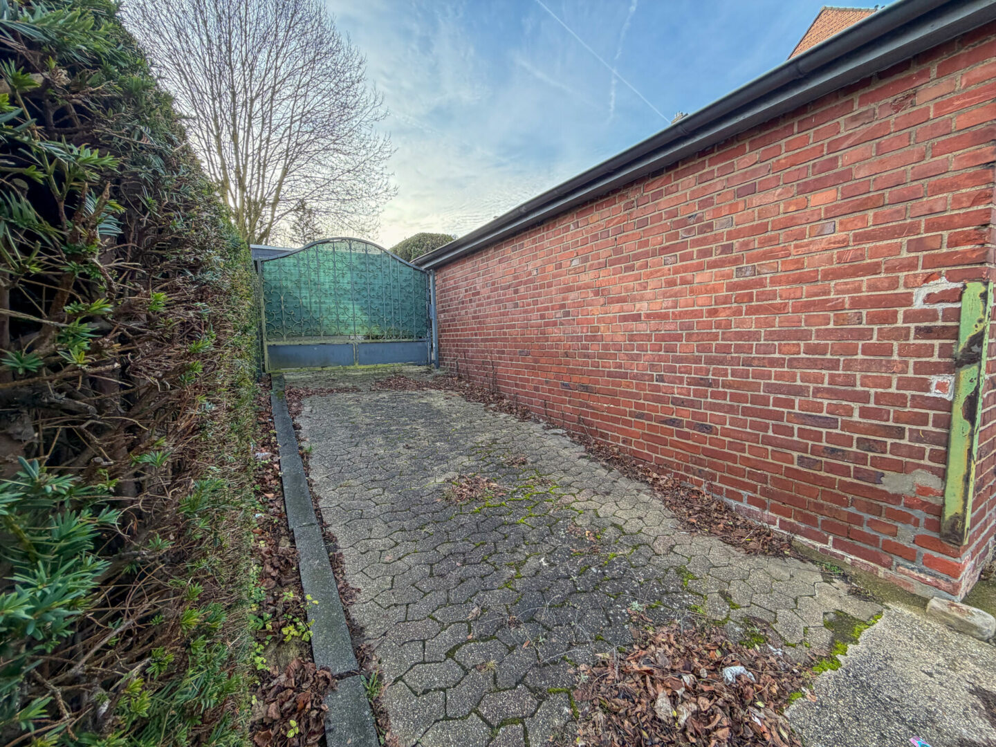 Zum Haus gehört eine große Garage, die über einen privaten Zufahrtsweg von der Seitenstraße aus erreichbar ist. Die Zufahrt wird durch ein schmiedeeisernes, elektrisches Tor abgeschlossen und sorgt für zusätzliche Privatsphäre und Sicherheit.