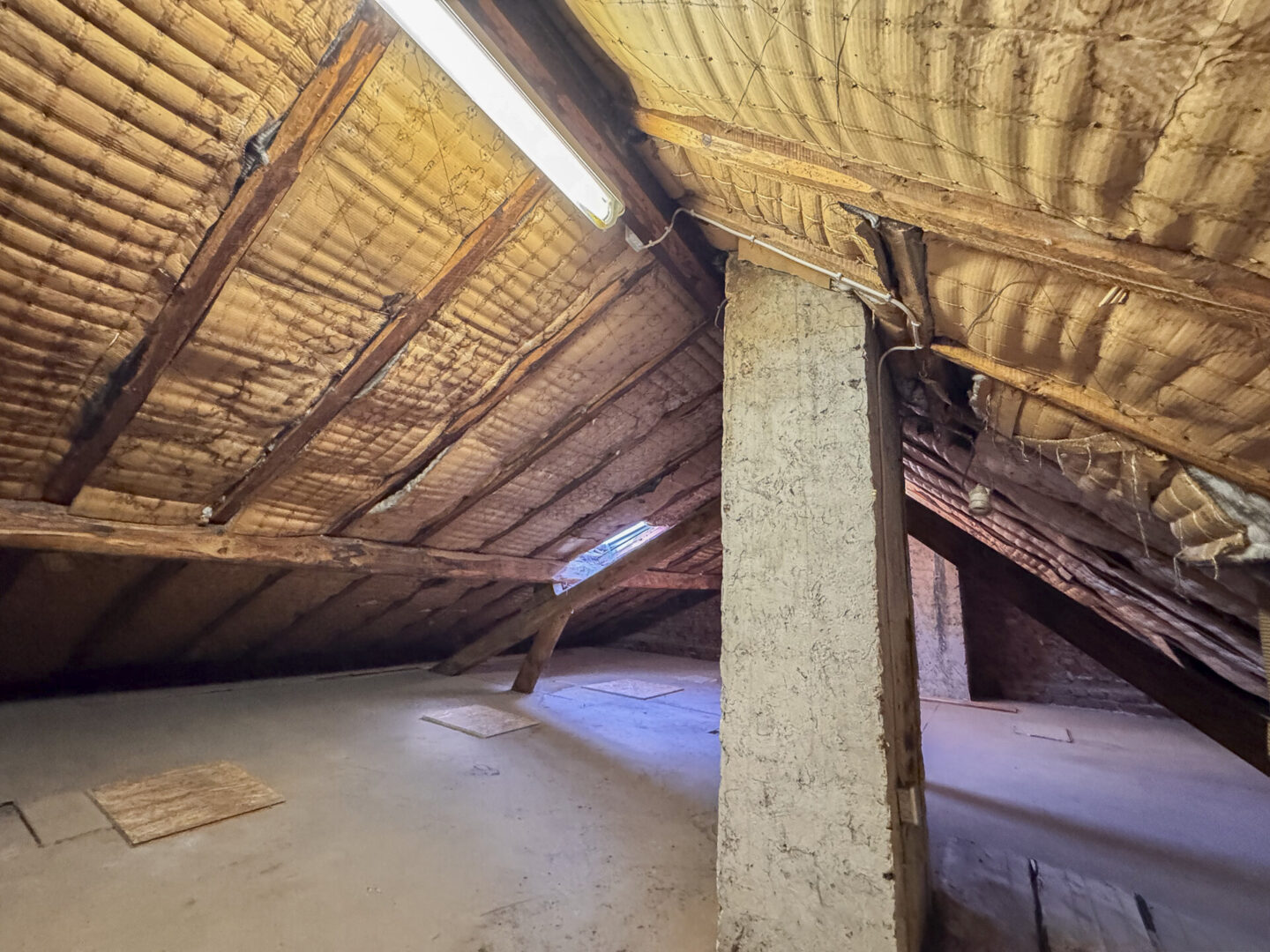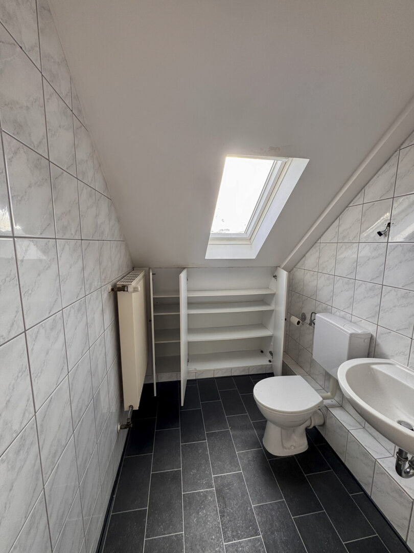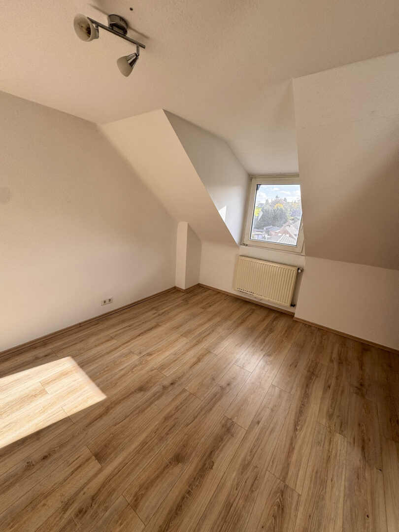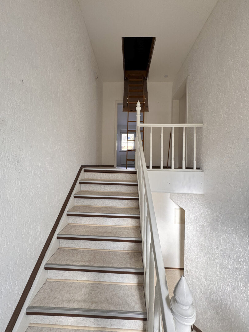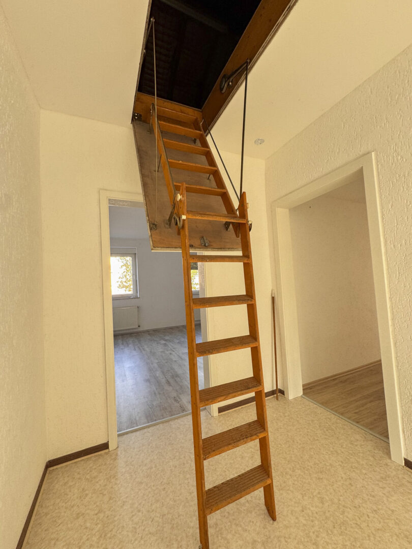 Über eine Ausziehtreppe erreicht man den gedämmten Spitzboden, der als großzügige Abstellfläche genutzt werden kann.