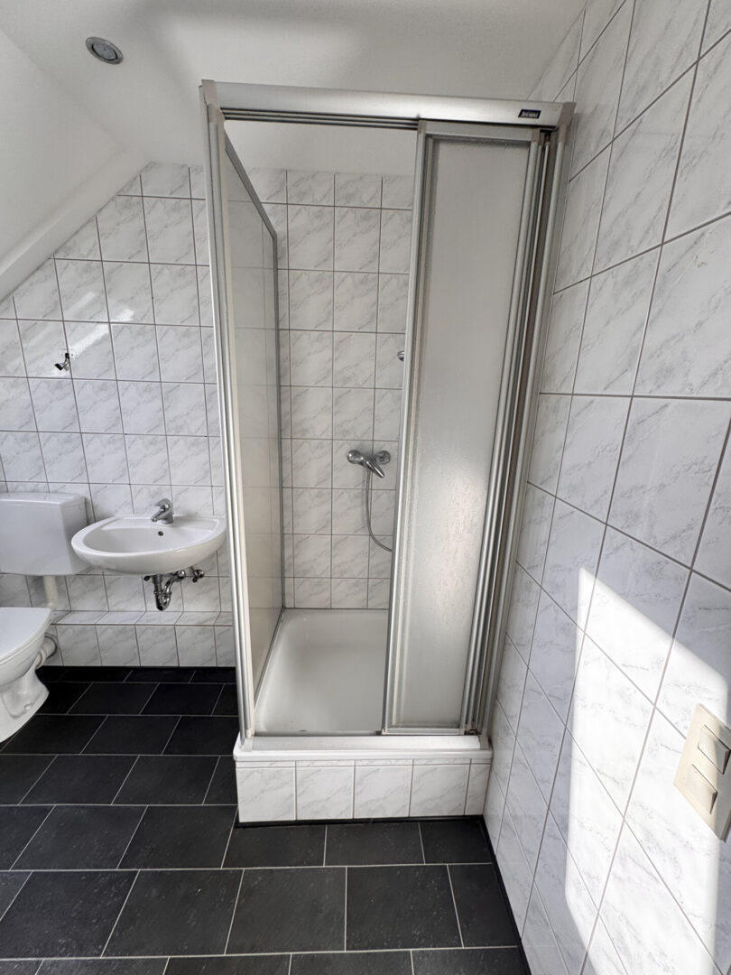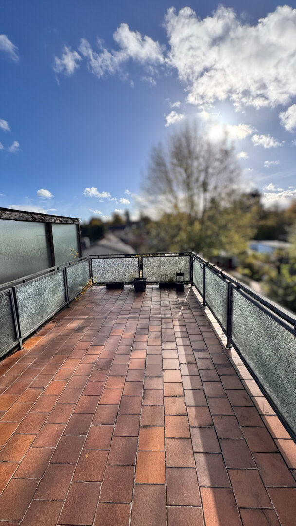 Die 2. Wohneinheit, eine Maisonettwohnung, erstreckt sich über das Ober- und Dachgeschoss und ist ca. 123 qm groß. Im 1. Obergeschoss befindet sich ein großes Wohn-Esszimmer, die Küche und ein Badezimmer mit Dusche. Von der Küche aus gelangen Sie auf eine schöne Dachterrasse über dem Anbau, mit Blick ins Grüne, die zum Entspannen einlädt.