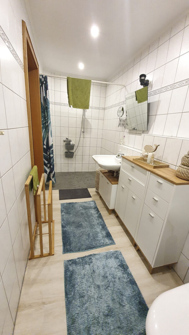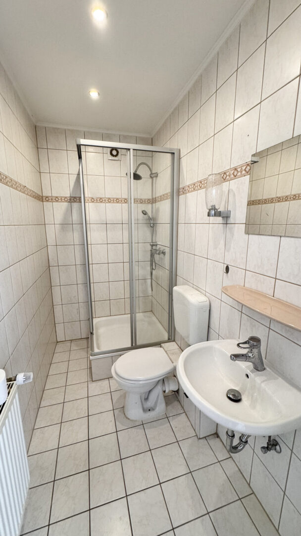 Die Erdgeschosswohnung ist ca. 50 qm groß und verfügt über ein Wohnzimmer, ein Schlafzimmer, eine Küche und ein Badezimmer mit ebenerdiger Dusche. Von der Terrasse aus reichen Sie einen Hauswirtschafts-/Abstellraum im Anbau, mit ca. 15 qm Nutzfläche, zur individuellen Nutzung.